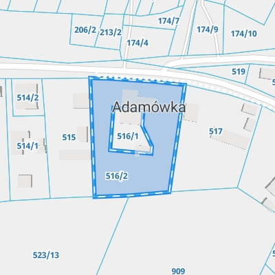Zobacz przykładowe dane dotyczące Ewidencji Gruntów i Budynków. Działka ewidencyjna urzędu znajduje się przy Adamówka