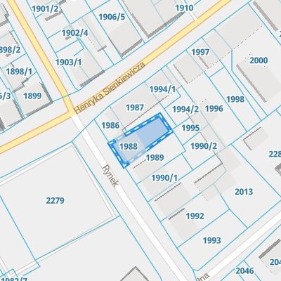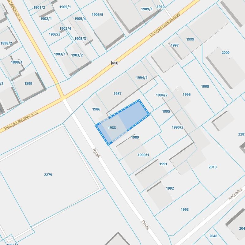 Zobacz przykładowe dane dotyczące Ewidencji Gruntów i Budynków. Działka ewidencyjna urzędu znajduje się przy Rynek