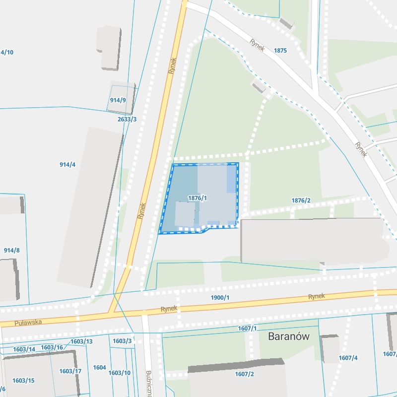 Zobacz przykładowe dane dotyczące Ewidencji Gruntów i Budynków. (Rejestr gruntów EGIB) Działka ewidencyjna urzędu znajduje się przy ul. Rynek. Wyszukaj swoją działkę na mapie Geoportal Baranów i pobierz raport.
