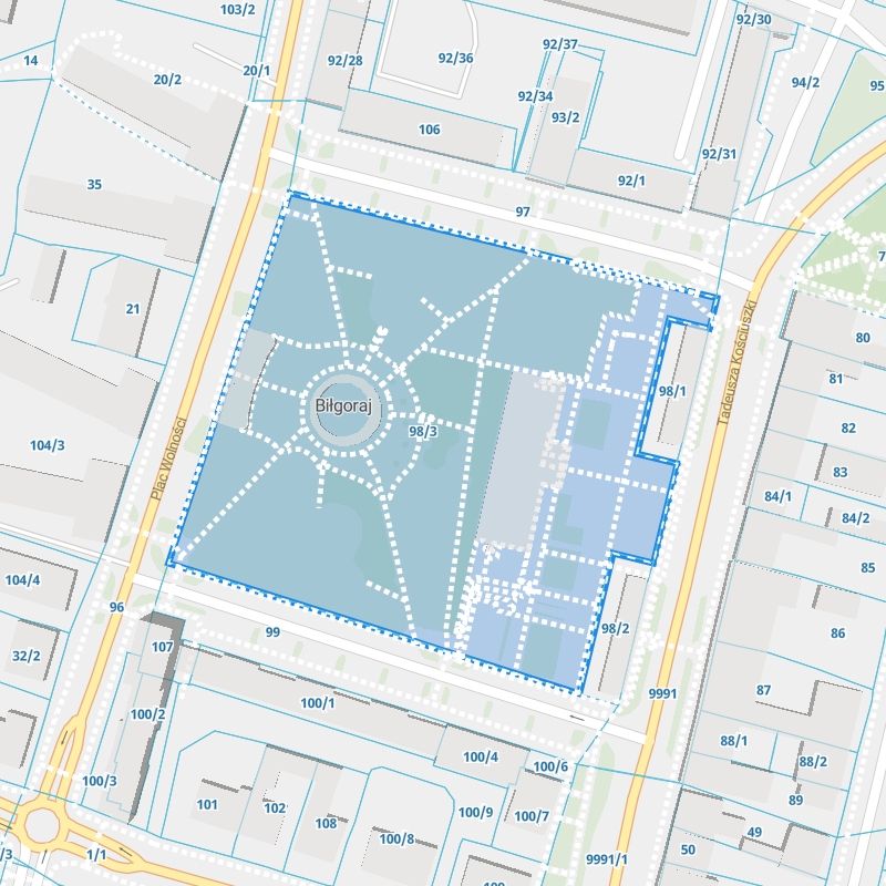 Wniosek o wypis i wyrys z ewidencji gruntów i budynków może uzyskać właściciel, osoba, która ma prawo dysponować nieruchomością, osoba albo przedsiębiorstwo, które ma prawne powody uzyskania takiego dokumentu. Urząd Miasta Biłgoraj w granicach administracyjnych obejmuje miejscowości: Biłgoraj. Wniosek należy złożyć w starostwie powiatowym lub urzędzie miasta lub przez internet. Podstawowe informacje z ewidencji gruntów i budynków dla dowolnej działki możesz uzyskać natychmiastowo pobierając raport o działce.