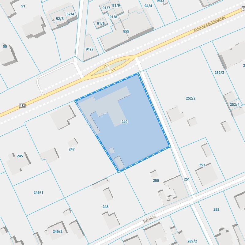 Zobacz przykładowe dane dotyczące Ewidencji Gruntów i Budynków. Działka ewidencyjna urzędu znajduje się przy ul. Mickiewicza