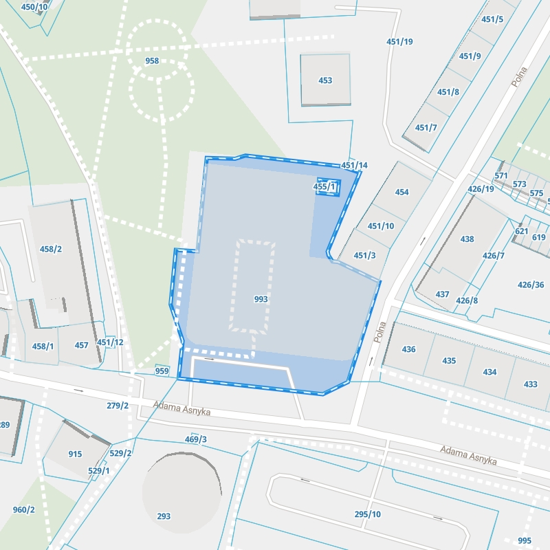 Zobacz przykładowe dane dotyczące Ewidencji Gruntów i Budynków. Działka ewidencyjna urzędu znajduje się przy ul. Rynek