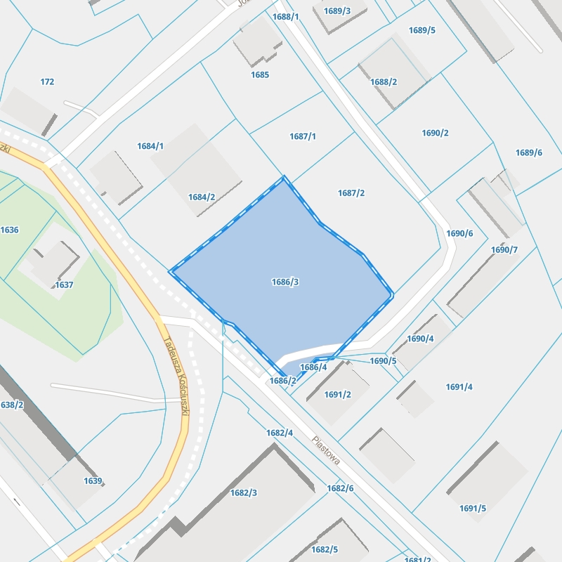 Zobacz przykładowe dane dotyczące Ewidencji Gruntów i Budynków. Działka ewidencyjna urzędu znajduje się przy ul. Armii Krajowej