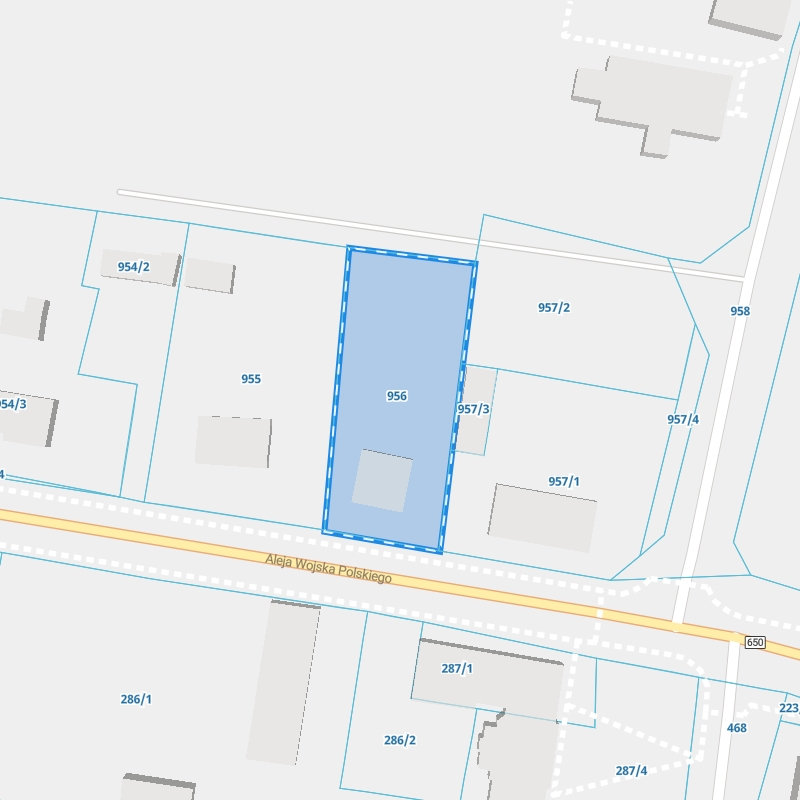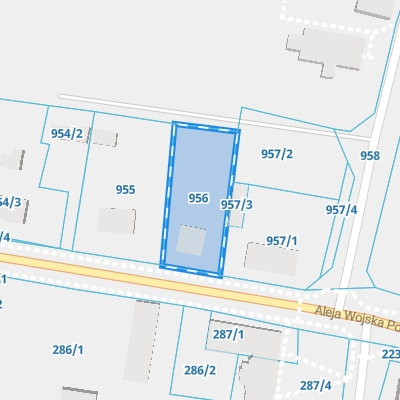 Zobacz przykładowe dane dotyczące Ewidencji Gruntów i Budynków. Działka ewidencyjna urzędu znajduje się przy Aleja Wojska Polskiego