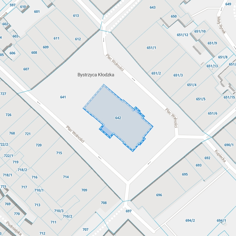 Zobacz przykładowe dane dotyczące Ewidencji Gruntów i Budynków. (Rejestr gruntów EGIB) Działka ewidencyjna urzędu znajduje się przy Plac Wolności . Wyszukaj swoją działkę na mapie Geoportal Bystrzyca Kłodzka i pobierz raport.