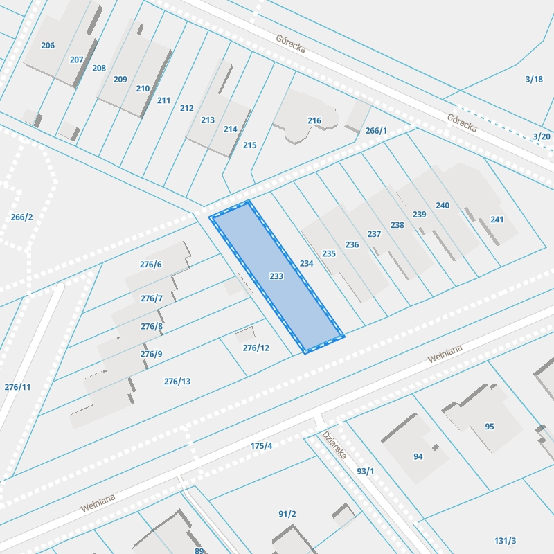 Zobacz przykładowe dane dotyczące Ewidencji Gruntów i Budynków. Działka ewidencyjna urzędu znajduje się przy ul. Planetorza