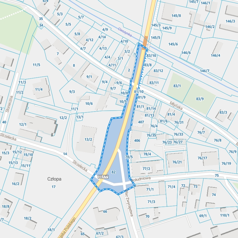 Wyszukaj działkęRyc. 1. Urząd Miasta i Gminy Człopa - przykładowy wyrys z Ewidencji Gruntów i Budynków na mapie satelitarnej.