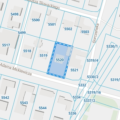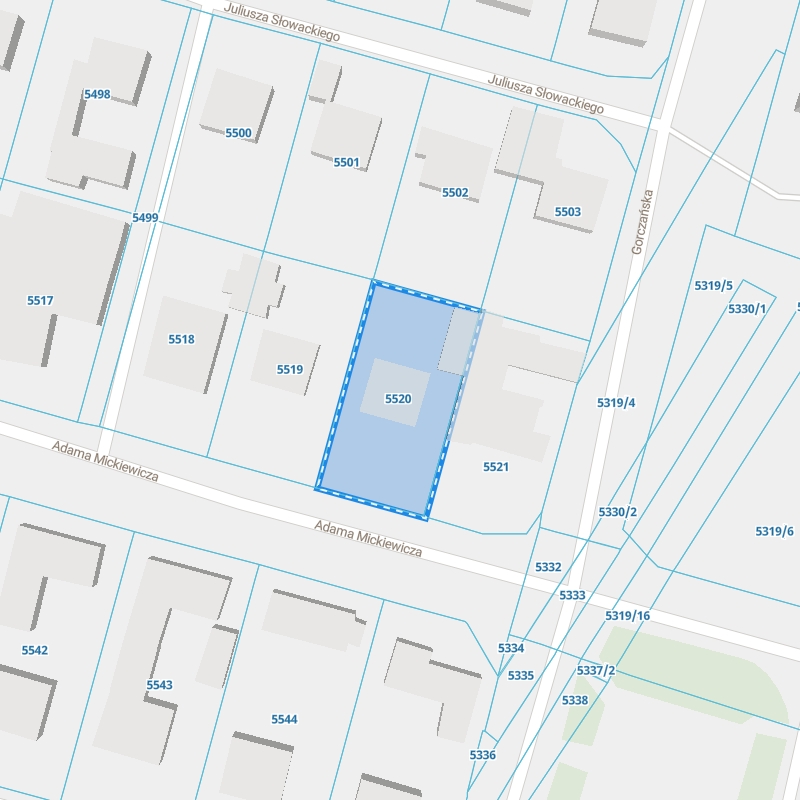 Zobacz przykładowe dane dotyczące Ewidencji Gruntów i Budynków. Działka ewidencyjna urzędu znajduje się przy ul. Gorczańska