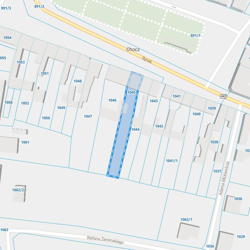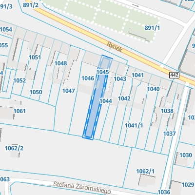 Zobacz przykładowe dane dotyczące Ewidencji Gruntów i Budynków. Działka ewidencyjna urzędu znajduje się przy Rynek