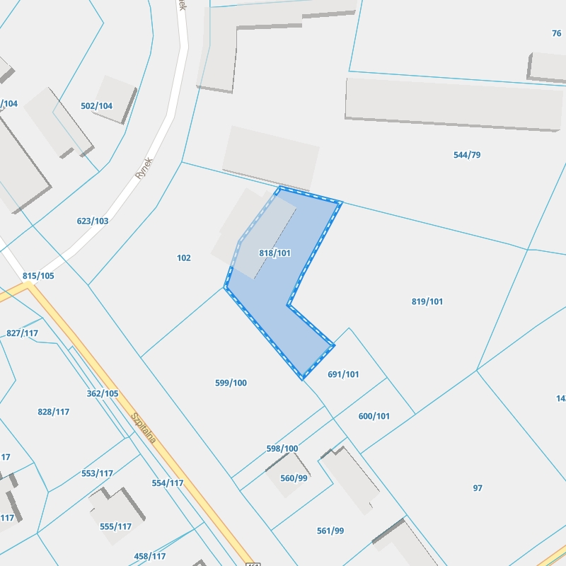 Zobacz przykładowe dane dotyczące Ewidencji Gruntów i Budynków. Działka ewidencyjna urzędu znajduje się przy ul. Rynek
