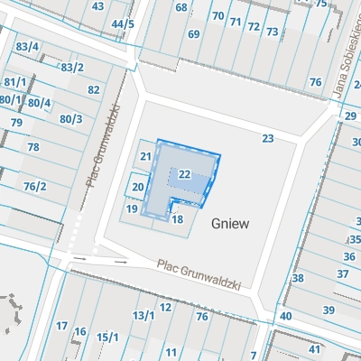 Ryc. 2. Urząd Miasta i Gminy Gniew - granice działki urzędu na podstawie wyrysu z Ewidencji Gruntów i Budynków na mapie podkładowej OpenStreetMap