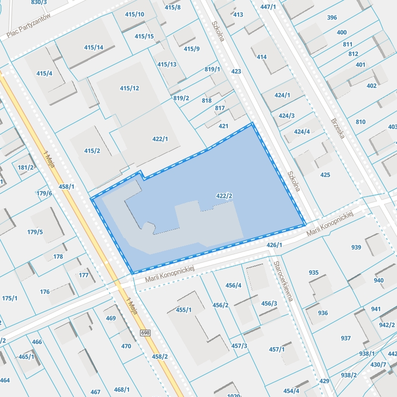 Zobacz przykładowe dane dotyczące Ewidencji Gruntów i Budynków. Działka ewidencyjna urzędu znajduje się przy ul. Bialska