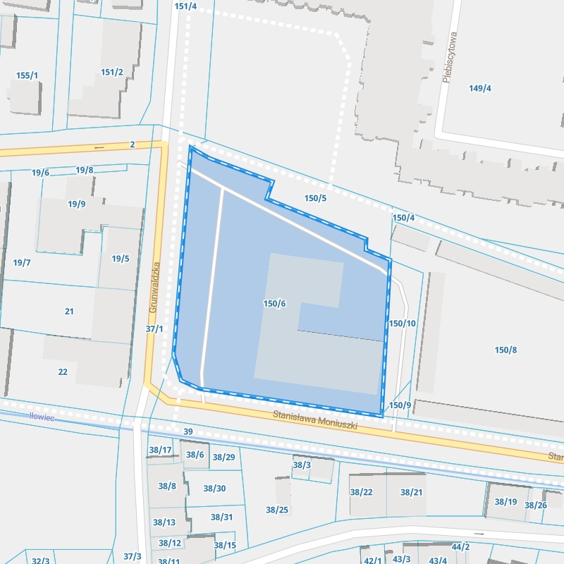 Zobacz przykładowe dane dotyczące Ewidencji Gruntów i Budynków. Działka ewidencyjna urzędu znajduje się przy ul. Katowicka