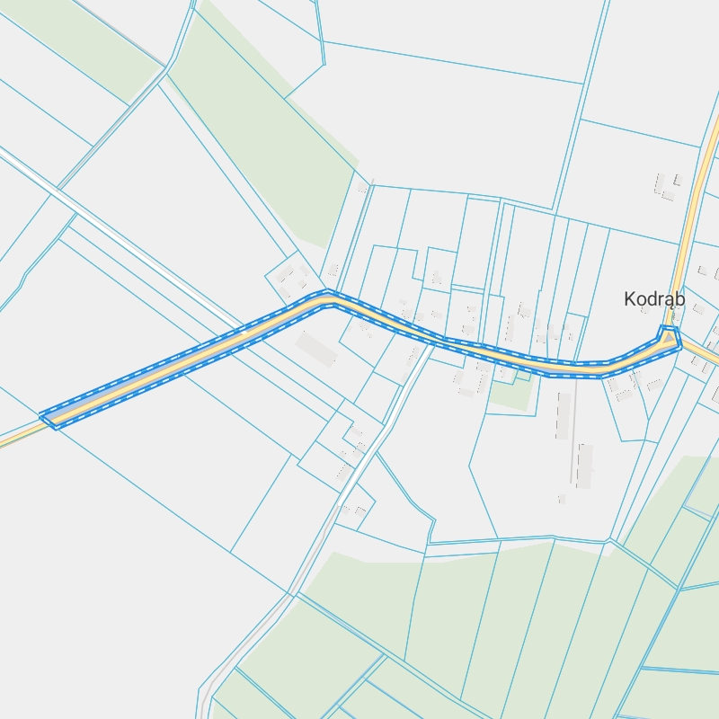 Ryc. 2. Urząd Gminy Kodrąb - granice działki urzędu na podstawie wyrysu z Ewidencji Gruntów i Budynków na mapie podkładowej OpenStreetMap