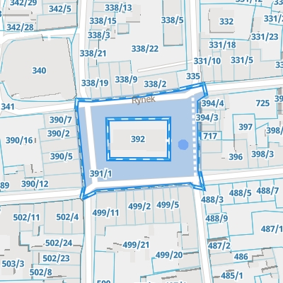 Zobacz przykładowe dane dotyczące Ewidencji Gruntów i Budynków. Działka ewidencyjna urzędu znajduje się przy ul. Rynek