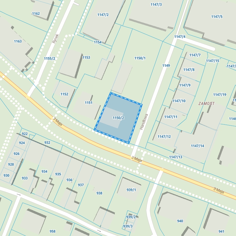Zobacz przykładowe dane dotyczące Ewidencji Gruntów i Budynków. Działka ewidencyjna urzędu znajduje się przy ul. 3-go Maja