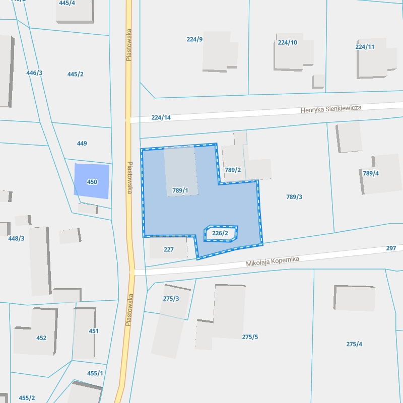 Zobacz przykładowe dane dotyczące Ewidencji Gruntów i Budynków. Działka ewidencyjna urzędu znajduje się przy ul. Piastowska