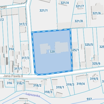 Zobacz przykładowe dane dotyczące Ewidencji Gruntów i Budynków. (Rejestr gruntów EGIB) Działka ewidencyjna urzędu znajduje się przy Jana Pawła II. Wyszukaj swoją działkę na mapie Geoportal Łapsze Niżne i pobierz raport.