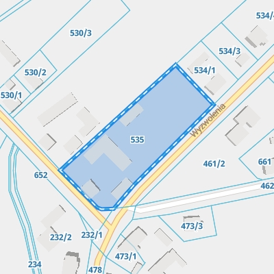Wyszukaj działkęRyc. 1. Urząd Gminy Liniewo - przykładowy wyrys z Ewidencji Gruntów i Budynków na mapie satelitarnej.