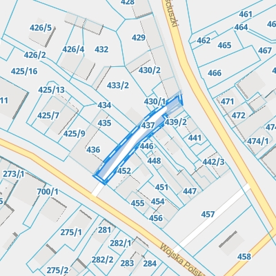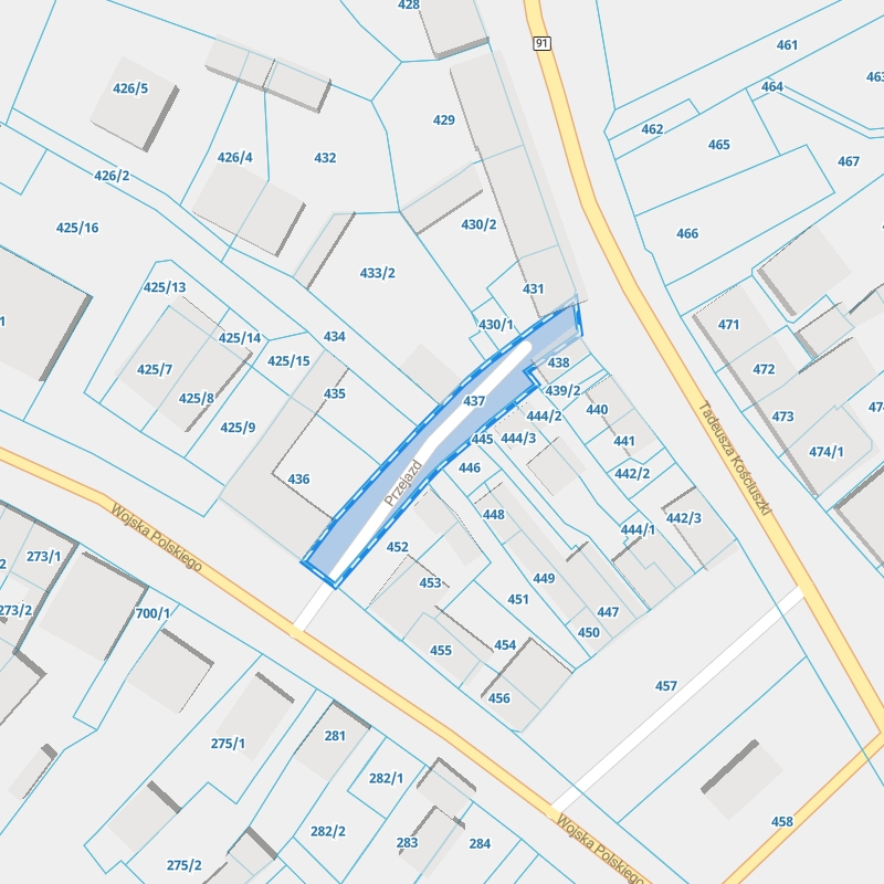 Zobacz przykładowe dane dotyczące Ewidencji Gruntów i Budynków. Działka ewidencyjna urzędu znajduje się przy ul. Wojska Polskiego