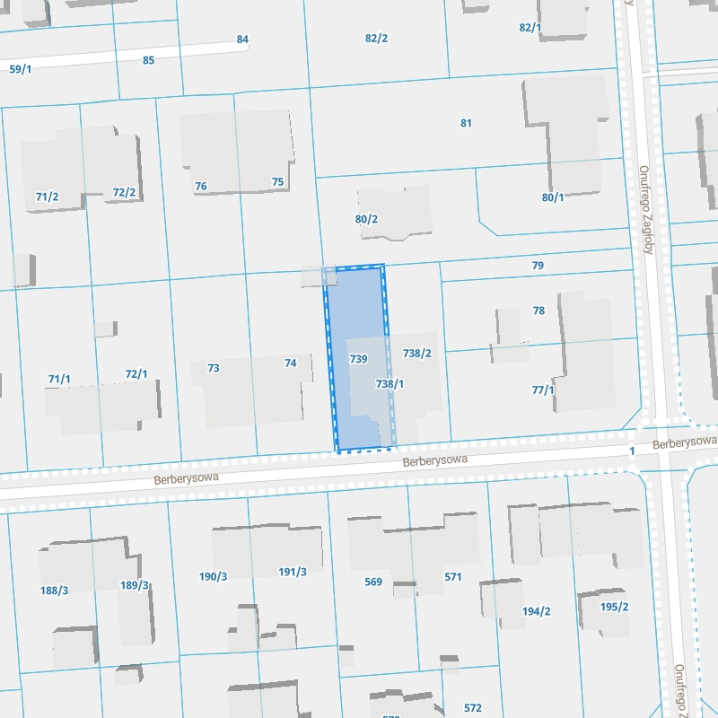 Zobacz przykładowe dane dotyczące Ewidencji Gruntów i Budynków. Działka ewidencyjna urzędu znajduje się przy ul. Jana Pawła II