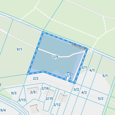 Wyszukaj działkęRyc. 1. Urząd Gminy Malczyce - przykładowy wyrys z Ewidencji Gruntów i Budynków na mapie satelitarnej.