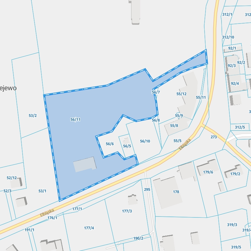 Zobacz przykładowe dane dotyczące Ewidencji Gruntów i Budynków. Działka ewidencyjna urzędu znajduje się przy ul. Elbląska
