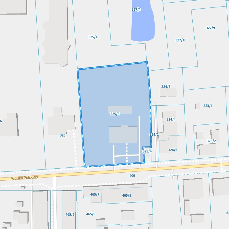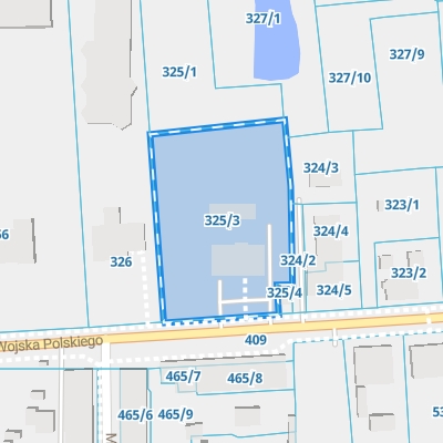 Zobacz przykładowe dane dotyczące Ewidencji Gruntów i Budynków. Działka ewidencyjna urzędu znajduje się przy ul. Wojska Polskiego