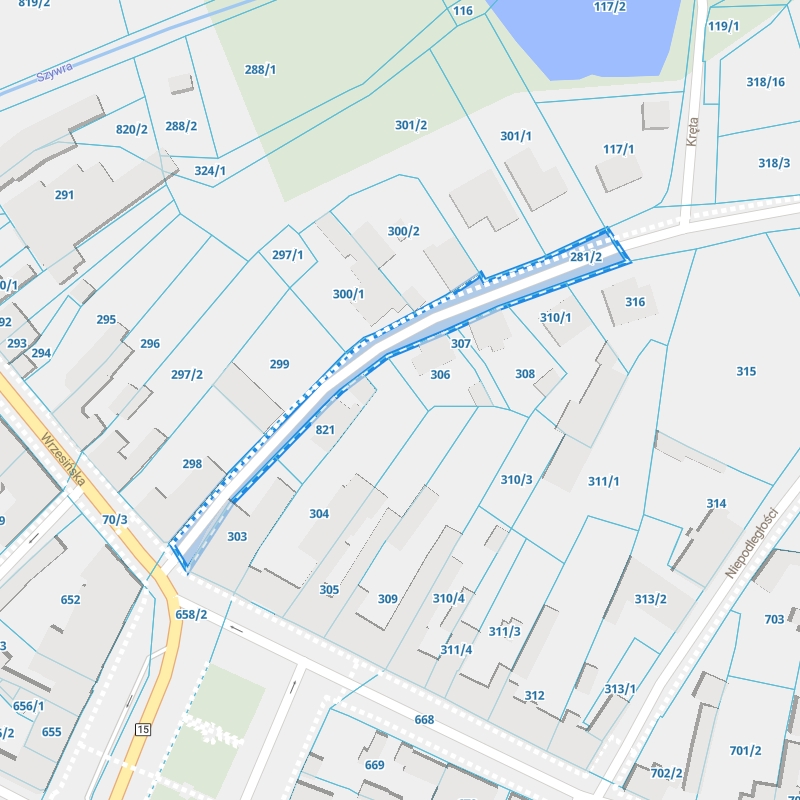 Zobacz przykładowe dane dotyczące Ewidencji Gruntów i Budynków. Działka ewidencyjna urzędu znajduje się przy ul. Wrzesińska