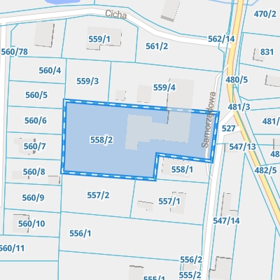 Zobacz przykładowe dane dotyczące Ewidencji Gruntów i Budynków. Działka ewidencyjna urzędu znajduje się przy ul. Samorządowa