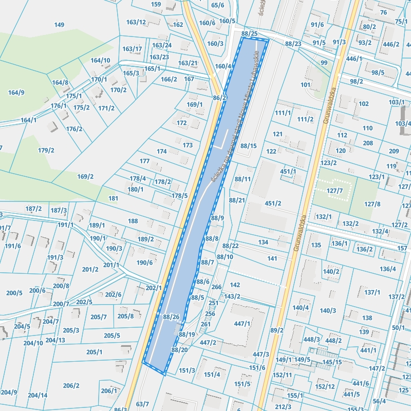 Zobacz przykładowe dane dotyczące Ewidencji Gruntów i Budynków. Działka ewidencyjna urzędu znajduje się przy ul. Rynek