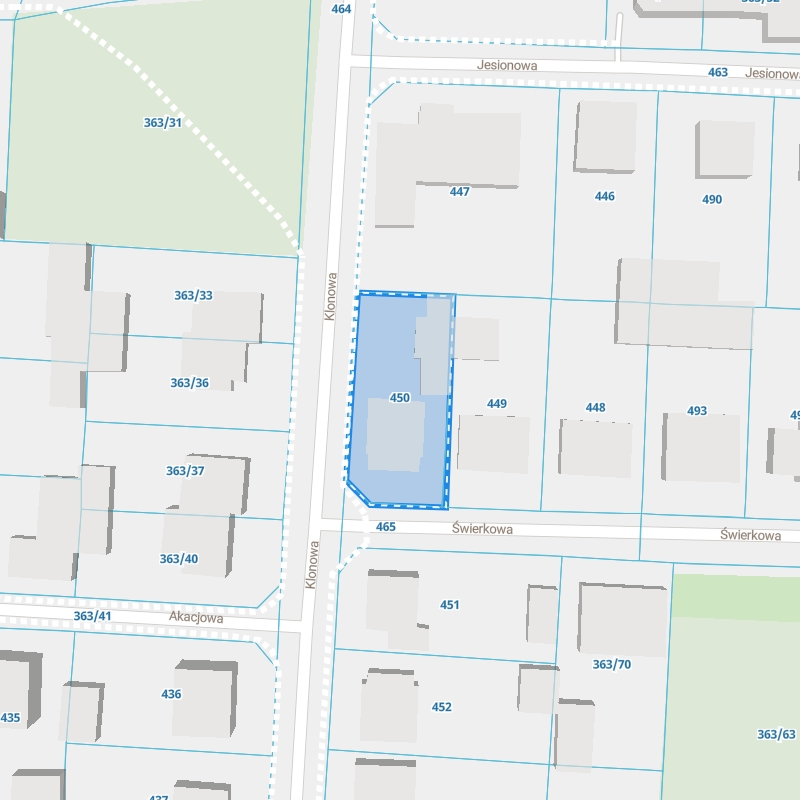 Wniosek o wypis i wyrys z ewidencji gruntów i budynków może uzyskać właściciel, osoba, która ma prawo dysponować nieruchomością, osoba albo przedsiębiorstwo, które ma prawne powody uzyskania takiego dokumentu. Urząd Gminy Nowe Miasto Nad Wartą w granicach administracyjnych obejmuje miejscowości: Nowe Miasto nad Wartą, Chocicza, Boguszyn, Wolica Pusta, Kruczyn, Komorze, Boguszynek, Chromiec, Utrata, Klęka, Chwalęcin, Wolica Kozia, Kolniczki, Szypłów, Kruczynek, Michałów, Stramnice, Dębno, Radliniec, Świętomierz, Jadwigów, Rogusko, Skoraczew, Tokarów, Teresa, Aleksandrów, Wolica Nowa, Komorze Nowe, Lutynia, Elżbietów, Hermanów, Dąbrowa. Wniosek należy złożyć w starostwie powiatowym lub urzędzie miasta lub przez internet. Podstawowe informacje z ewidencji gruntów i budynków dla dowolnej działki możesz uzyskać natychmiastowo pobierając raport o działce.