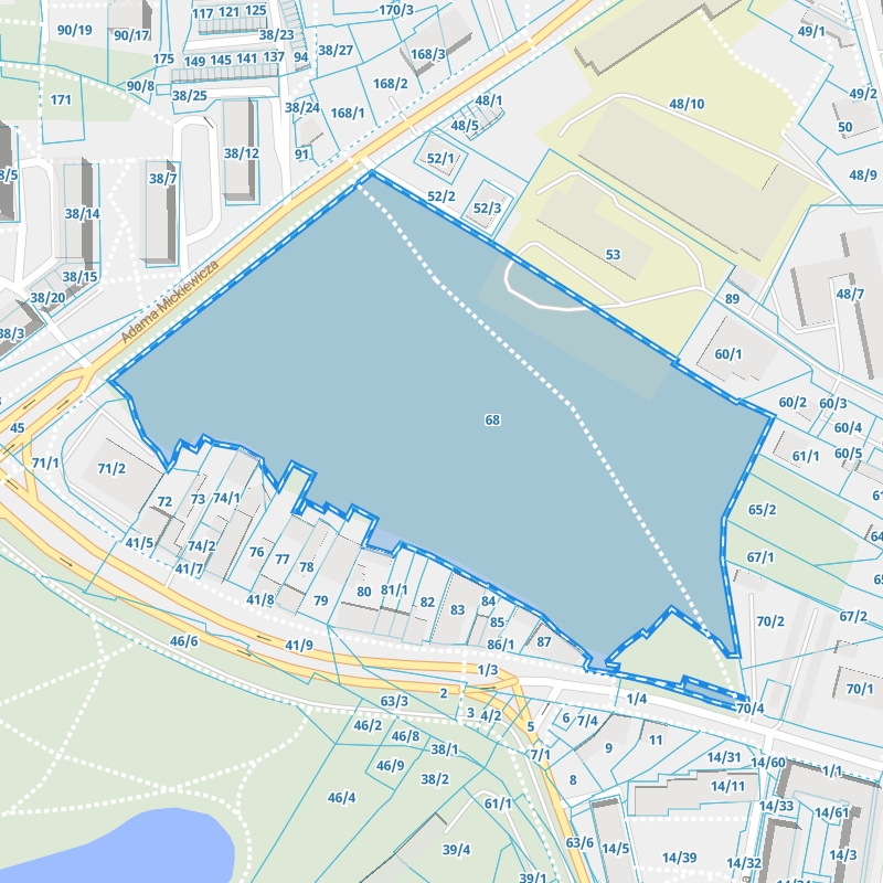 Zobacz przykładowe dane dotyczące Ewidencji Gruntów i Budynków. Działka ewidencyjna urzędu znajduje się przy ul. Jana Głogowskiego