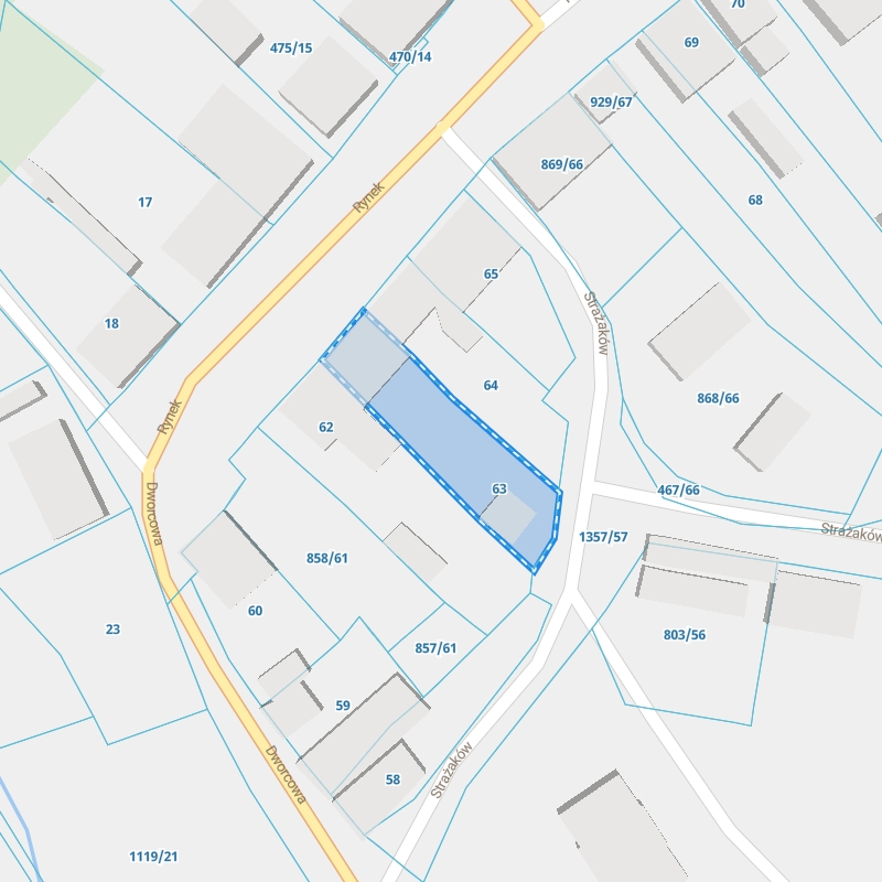 Zobacz przykładowe dane dotyczące Ewidencji Gruntów i Budynków. Działka ewidencyjna urzędu znajduje się przy ul. Damrota