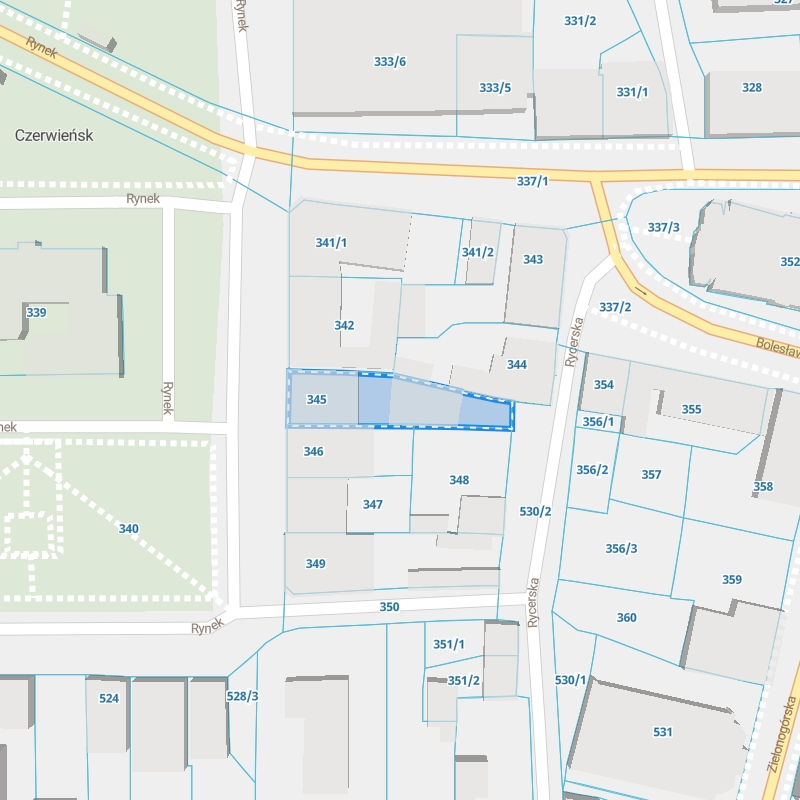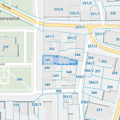 Zobacz przykładowe dane dotyczące Ewidencji Gruntów i Budynków. Działka ewidencyjna urzędu znajduje się przy Rynek