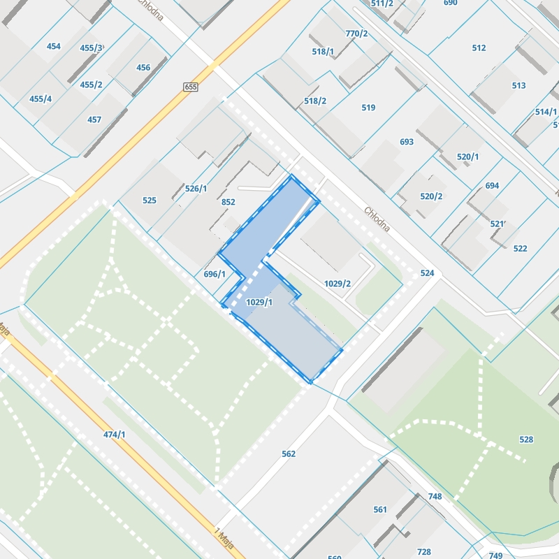 Zobacz przykładowe dane dotyczące Ewidencji Gruntów i Budynków. Działka ewidencyjna urzędu znajduje się przy pl. Kościuszki