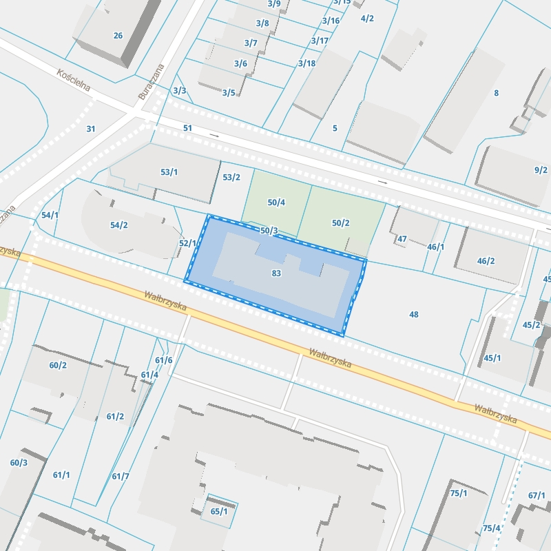 Zobacz przykładowe dane dotyczące Ewidencji Gruntów i Budynków. Działka ewidencyjna urzędu znajduje się przy ul. Kościuszki