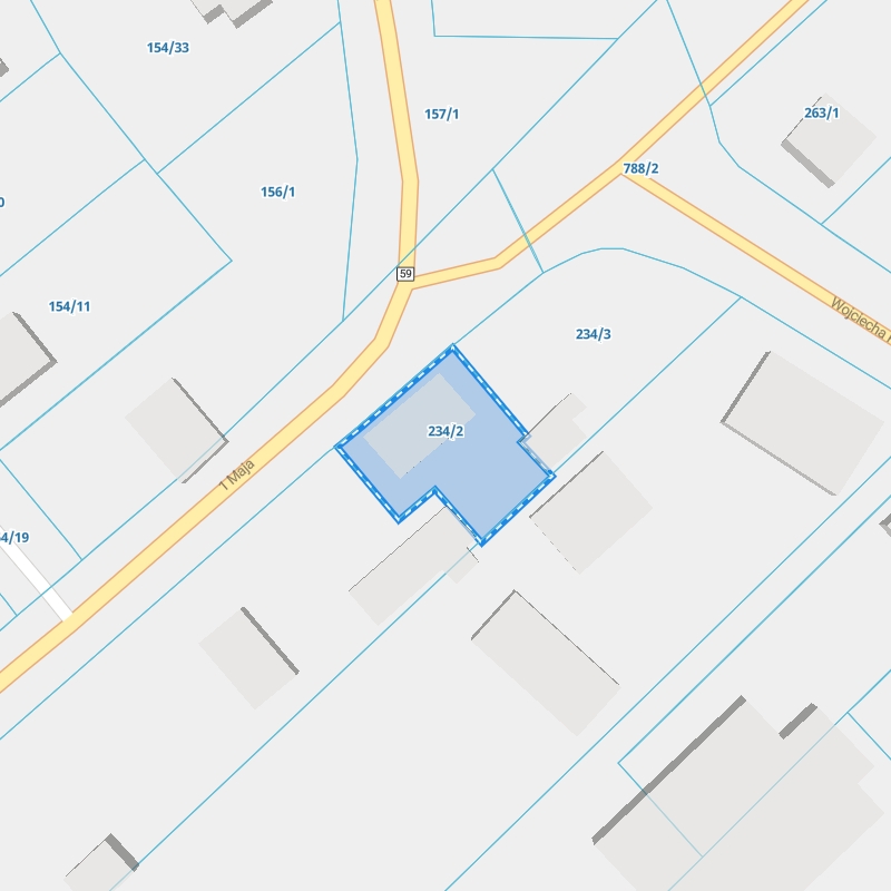 Zobacz przykładowe dane dotyczące Ewidencji Gruntów i Budynków. Działka ewidencyjna urzędu znajduje się przy ul. Wojciecha Ketrzyńskiego