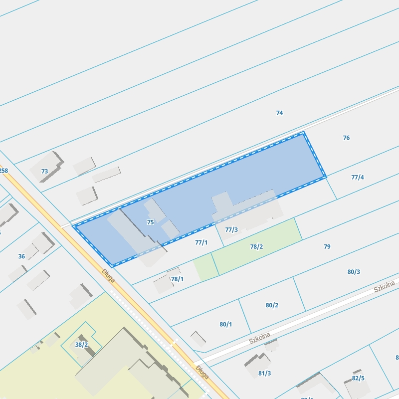 Zobacz przykładowe dane dotyczące Ewidencji Gruntów i Budynków. Działka ewidencyjna urzędu znajduje się przy ul. Długa