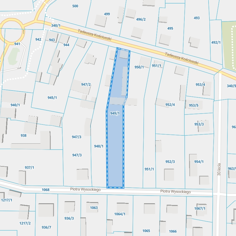 Zobacz przykładowe dane dotyczące Ewidencji Gruntów i Budynków. Działka ewidencyjna urzędu znajduje się przy ul. 1 Maja