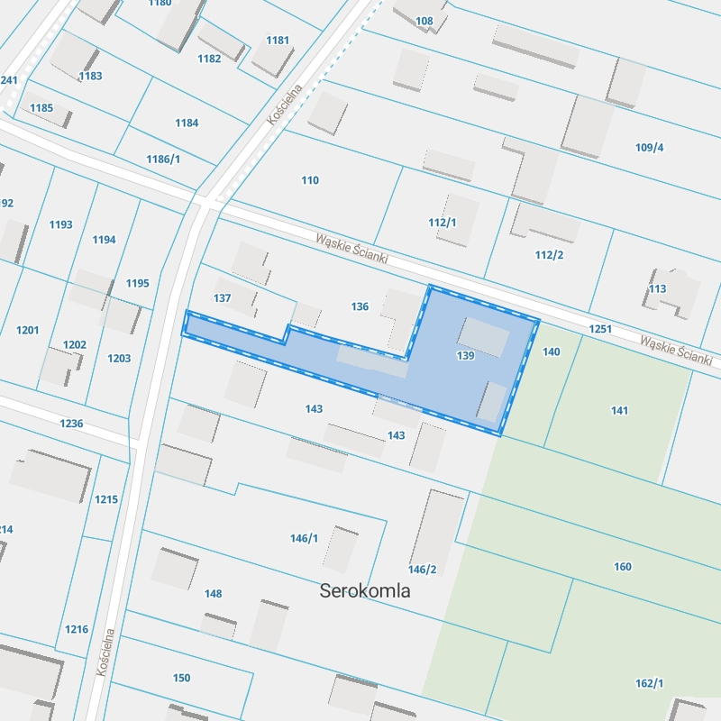 Wniosek o wypis i wyrys z ewidencji gruntów i budynków może uzyskać właściciel, osoba, która ma prawo dysponować nieruchomością, osoba albo przedsiębiorstwo, które ma prawne powody uzyskania takiego dokumentu. Urząd Gminy Serokomla w granicach administracyjnych obejmuje miejscowości: Serokomla, Charlejów, Hordzież, Wólka, Ruda, Pieńki, Czarna, Krzówka, Wola Bukowska, Poznań, Bronisławów Duży, Bielany Duże, Leonardów, Nowa Ruda, Ernestynów, Józefów Duży, Bronisławów Mały. Wniosek należy złożyć w starostwie powiatowym lub urzędzie miasta lub przez internet. Podstawowe informacje z ewidencji gruntów i budynków dla dowolnej działki możesz uzyskać natychmiastowo pobierając raport o działce.