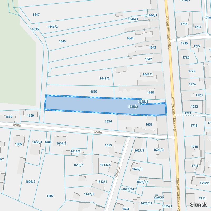 Wyszukaj działkęRyc. 1. Urząd Gminy Słońsk - przykładowy wyrys z Ewidencji Gruntów i Budynków na mapie satelitarnej.