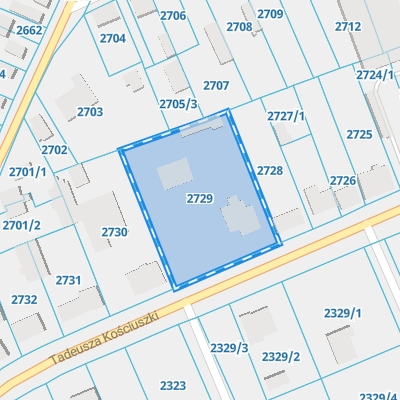 Zobacz przykładowe dane dotyczące Ewidencji Gruntów i Budynków. Działka ewidencyjna urzędu znajduje się przy ul. Rynek