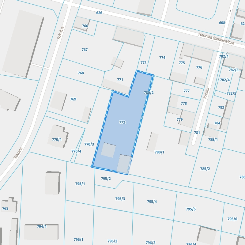 Zobacz przykładowe dane dotyczące Ewidencji Gruntów i Budynków. Działka ewidencyjna urzędu znajduje się przy ul. Płocka