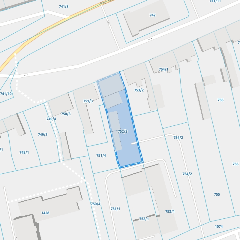 Zobacz przykładowe dane dotyczące Ewidencji Gruntów i Budynków. Działka ewidencyjna urzędu znajduje się przy Plac Wolności