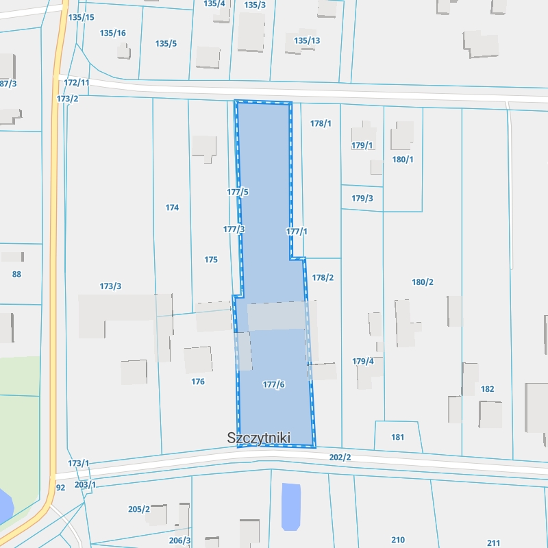 Wniosek o wypis i wyrys z ewidencji gruntów i budynków może uzyskać właściciel, osoba, która ma prawo dysponować nieruchomością, osoba albo przedsiębiorstwo, które ma prawne powody uzyskania takiego dokumentu. Urząd Gminy Szczytniki w granicach administracyjnych obejmuje miejscowości: Staw, Szczytniki, Iwanowice, Popów, Radliczyce, Krowica Zawodnia, Kuczewola, Główczyn, Mroczki Wielkie, Sobiesęki Trzecie, Marcjanów, Chojno, Gorzuchy, Sobiesęki Drugie, Lipka, Joanka, Niemiecka Wieś, Sobiesęki Pierwsze, Pośrednik, Cieszyków, Korzekwin, Iwanowice, Krowica Zawodnia, Trzęsów, Włodzimierz, Kościany, Krowica Pusta, Radliczyce, Szczytniki, Marchwacz-Kolonia, Antonin, Iwanowice, Borek, Krowica Zawodnia, Iwanowice, Antonin, Murowaniec, Tymieniec, Sobiesęki Drugie, Tymieniec, Pośrednik, Tymieniec, Kuczewola, Bronibór, Tymieniec, Pośrednik, Antonin, Joanka, Tymieniec, Sobiesęki Trzecie. Wniosek należy złożyć w starostwie powiatowym lub urzędzie miasta lub przez internet. Podstawowe informacje z ewidencji gruntów i budynków dla dowolnej działki możesz uzyskać natychmiastowo pobierając raport o działce.