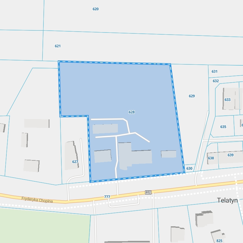 Zobacz przykładowe dane dotyczące Ewidencji Gruntów i Budynków. (Rejestr gruntów EGIB) Działka ewidencyjna urzędu znajduje się przy ul. Fryderyka Chopina. Wyszukaj swoją działkę na mapie Geoportal Telatyn i pobierz raport.