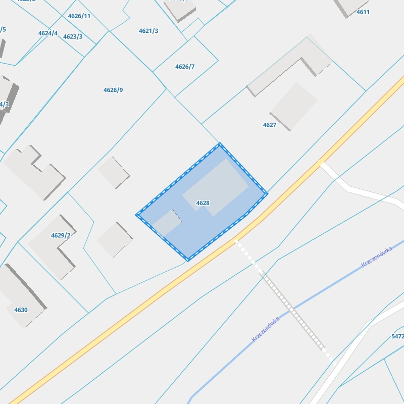 Zobacz przykładowe dane dotyczące Ewidencji Gruntów i Budynków. Działka ewidencyjna urzędu znajduje się przy Tokarnia