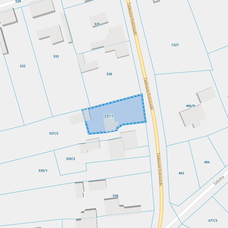 Zobacz przykładowe dane dotyczące Ewidencji Gruntów i Budynków. Działka ewidencyjna urzędu znajduje się przy ul. Żarska
