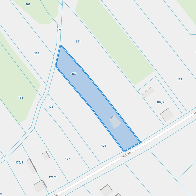 Wniosek o wypis i wyrys z ewidencji gruntów i budynków może uzyskać właściciel, osoba, która ma prawo dysponować nieruchomością, osoba albo przedsiębiorstwo, które ma prawne powody uzyskania takiego dokumentu. Urząd Gminy Urszulin w granicach administracyjnych obejmuje miejscowości: Urszulin, Wytyczno, Grabniak, Wereszczyn, Stare Załucze, Andrzejów, Michałów, Wola Wereszczyńska, Zawadówka, Dębowiec, Zabrodzie, Babsk, Łomnica, Sumin, Wólka Wytycka, Wincencin, Wielkopole, Nowe Załucze, Przymiarki, Sęków, Zastawie, Kozubata, Jamniki, Borysik, Andrzejów Osada. Wniosek należy złożyć w starostwie powiatowym lub urzędzie miasta lub przez internet. Podstawowe informacje z ewidencji gruntów i budynków dla dowolnej działki możesz uzyskać natychmiastowo pobierając raport o działce.